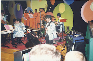 A banda e o coro do programa "A Última Chance", em 1998